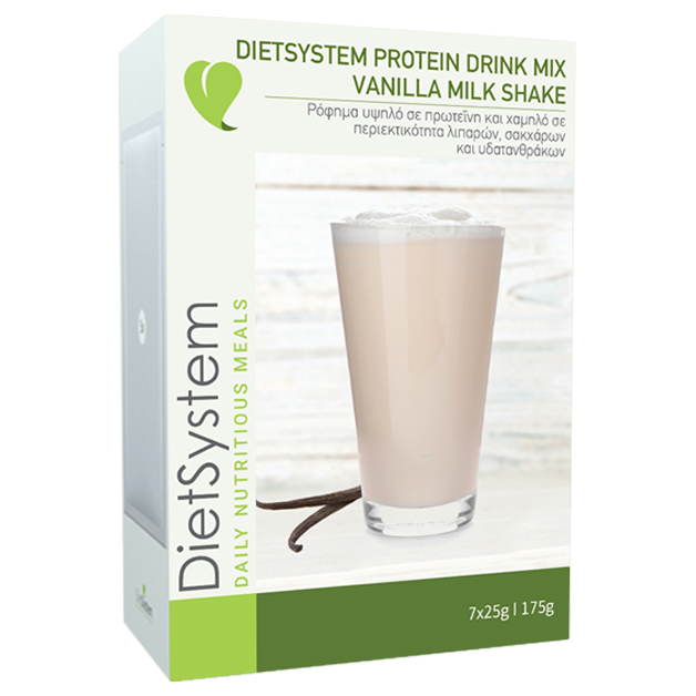 Ρόφημα DietSystem με γεύση βανίλια milkshake. Το Θρεπτικό πρωτεϊνούχο ρόφημα της DietSystem αποτελεί ένα γευστικό και υγιεινό υποκατάστατο γεύματος που σας προσφέρει μία εξαιρετική ισορροπία υψηλής ποιότητας πρωτεϊνών από γάλα και βασικών θρεπτικών συστατικών καθώς και πρόσθετων βοτάνων.